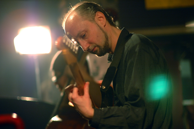 穏やかな口調で話す人だ.大げさでもなく過小でもなくあるとおりに語る.演奏中もあまり表情を変えることなく曲の世界に入り込んでいる.板倉の攻めまくるピアノの高音の連打に速弾きで対応するギター演奏は印象的だった....